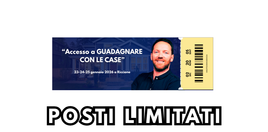 Dopo ben 26 edizioni abbiamo deciso di rinnovare l’evento “Guadagnare con le case” portando nuove strategie, potenziamenti e aggiornamenti dal mercato, che ti permetteranno di guadagnare con le case in modo ancora più veloce, semplice e accessibile.